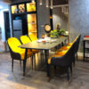 | Màu sắc bàn | chân bàn sơn PU màu nâu óc chó, mặt đá trắng vân mây |